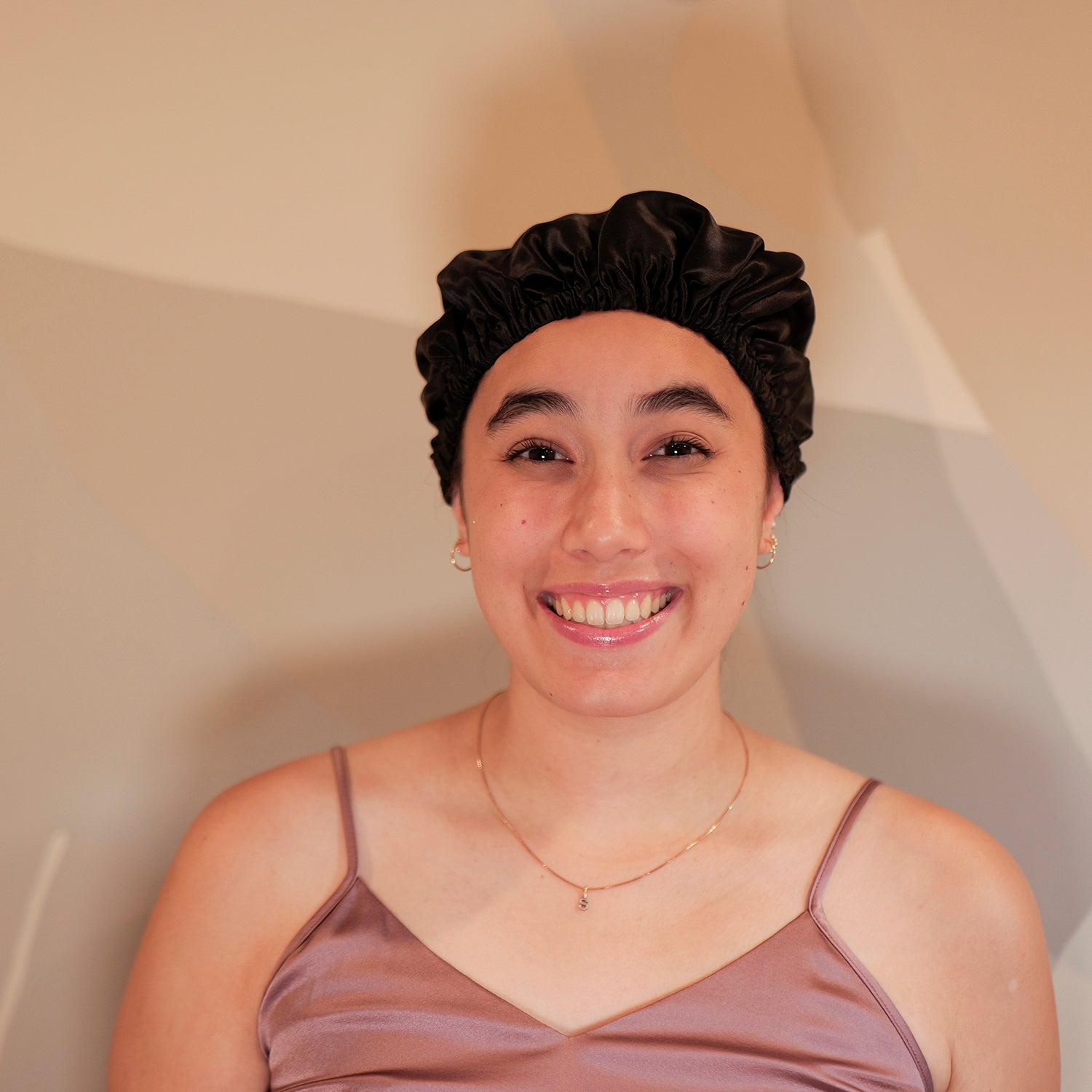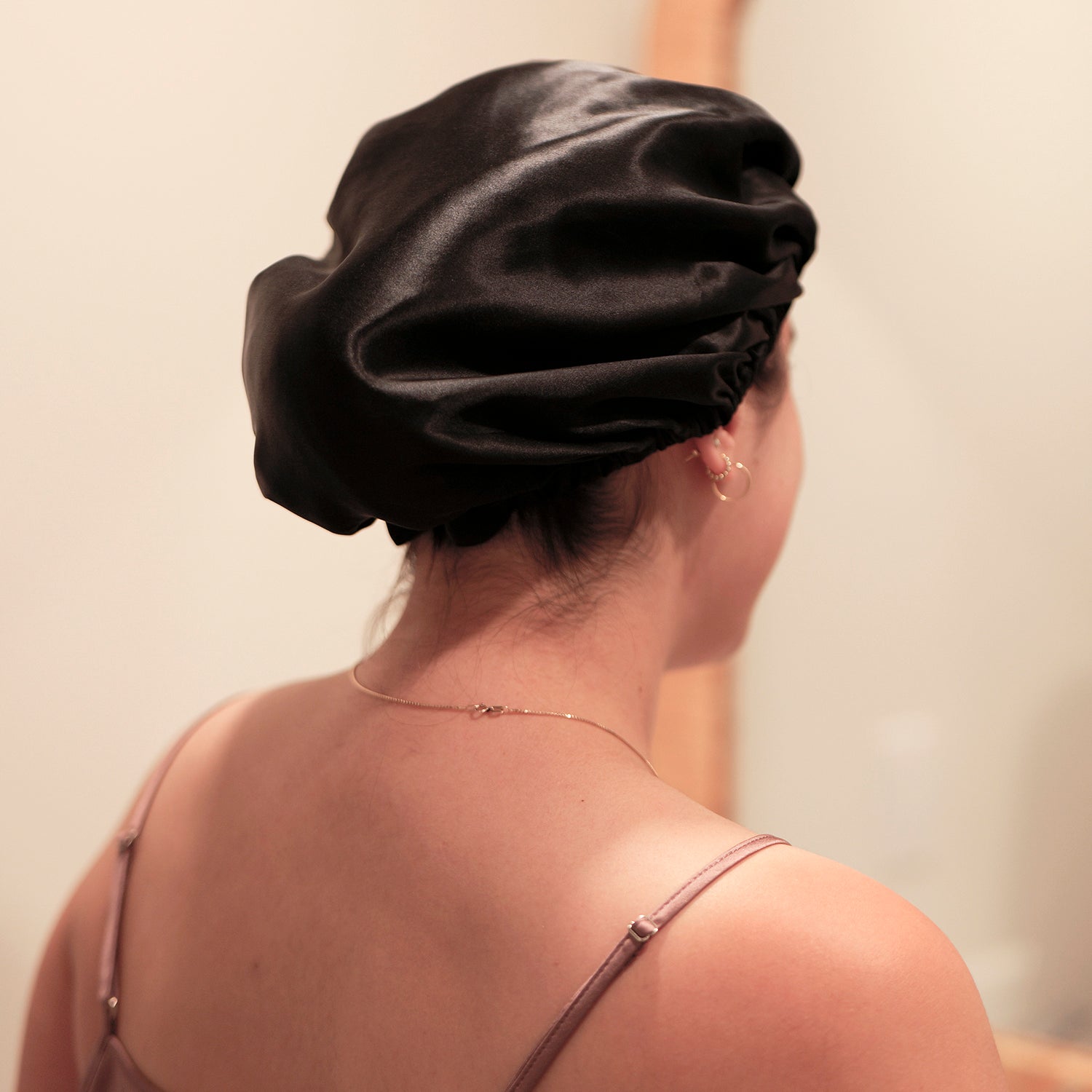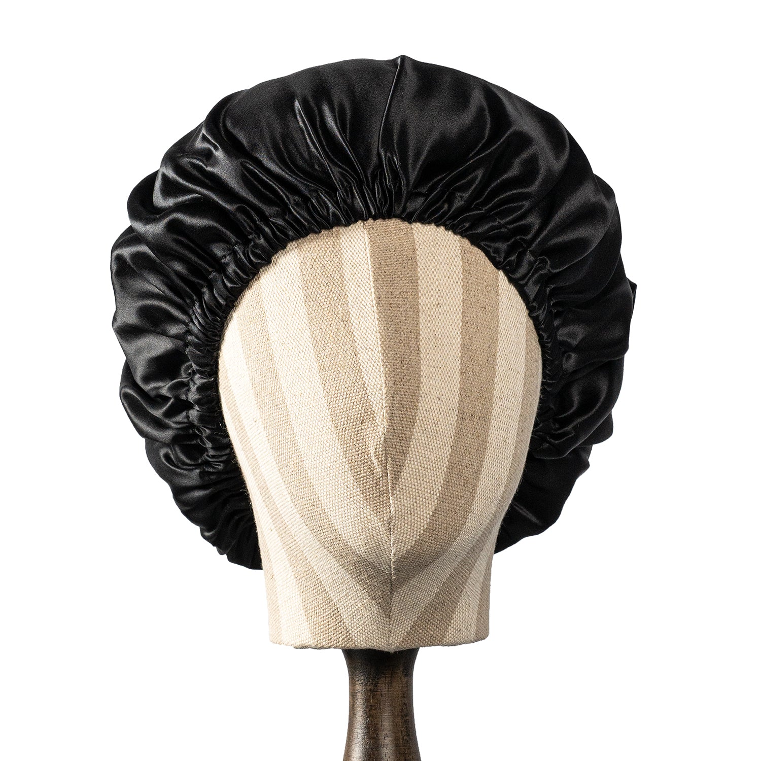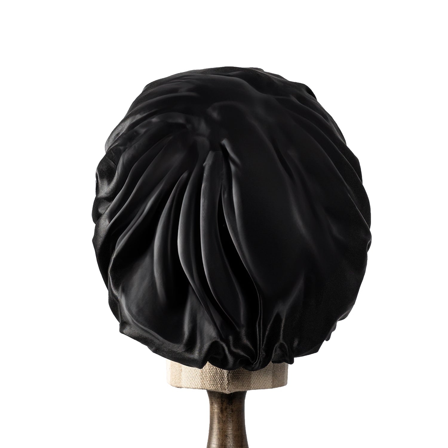 Pure Mulberry Silk Hair Bonnet Black | Single Layer with Adjustable Elastic | 100% Silk 22 Momme | Sleeping Bonnet Gift