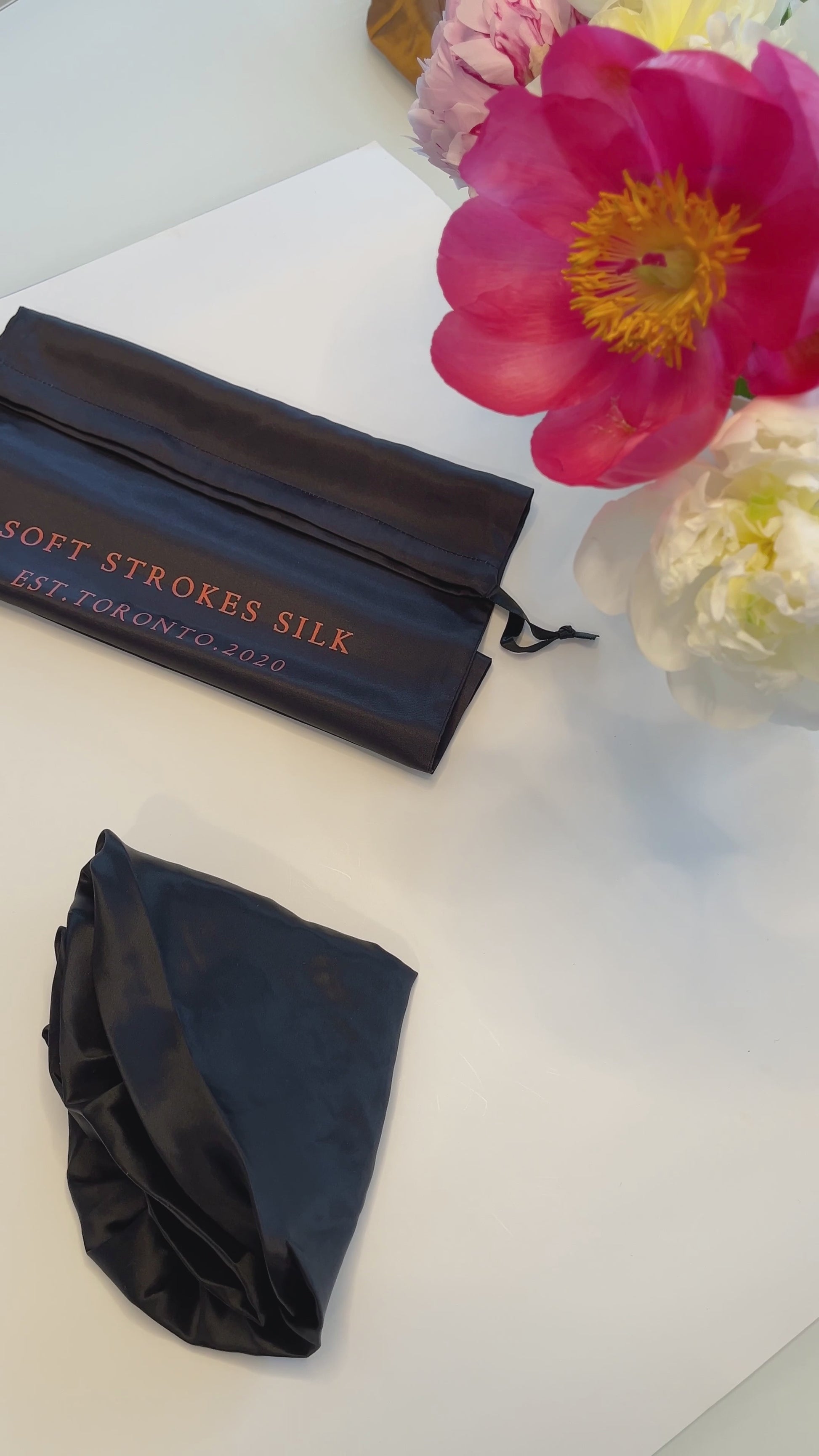 Sleep with this pure mulberry silk bonnet to maintain healthy hair and preserve hairstyle for styling the next day. Nestled inside the cool embrace of silk charmeuse at night, your waves and curls can move freely. As a protein fibre kind to fine or fragile hair, mulberry silk is keeps your hair hydrated, shiny, and bouncy. Great gift for both men and women with medium to long length hair.