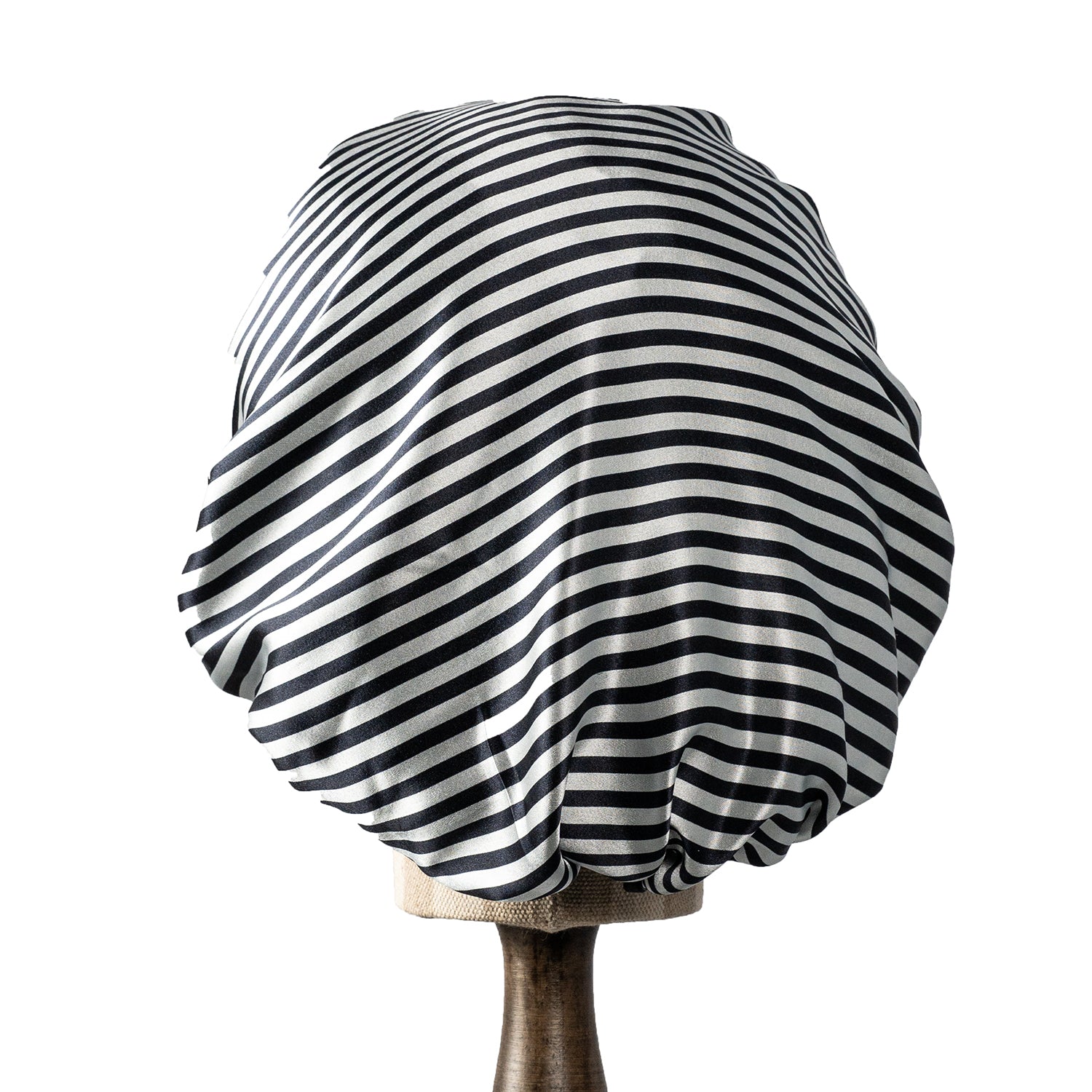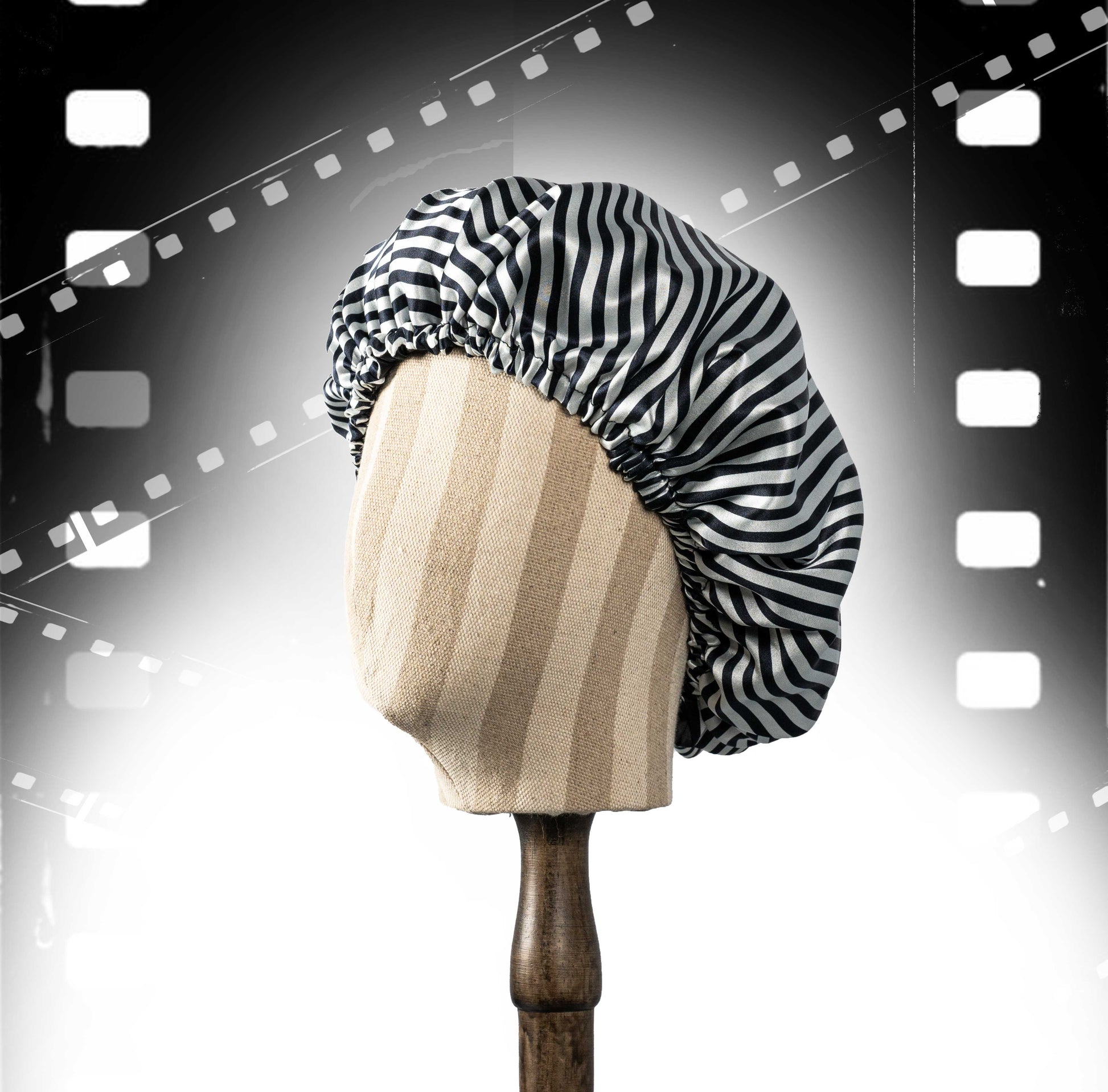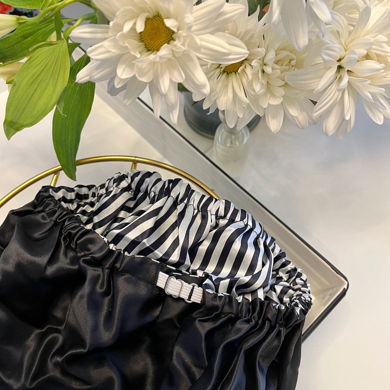 Pure Mulberry Silk Hair Bonnet Film Noir | Double Layer Reversible with Silk Lining | Adjustable Elastic | 100% Silk 22 Momme | Night Bonnet Gift