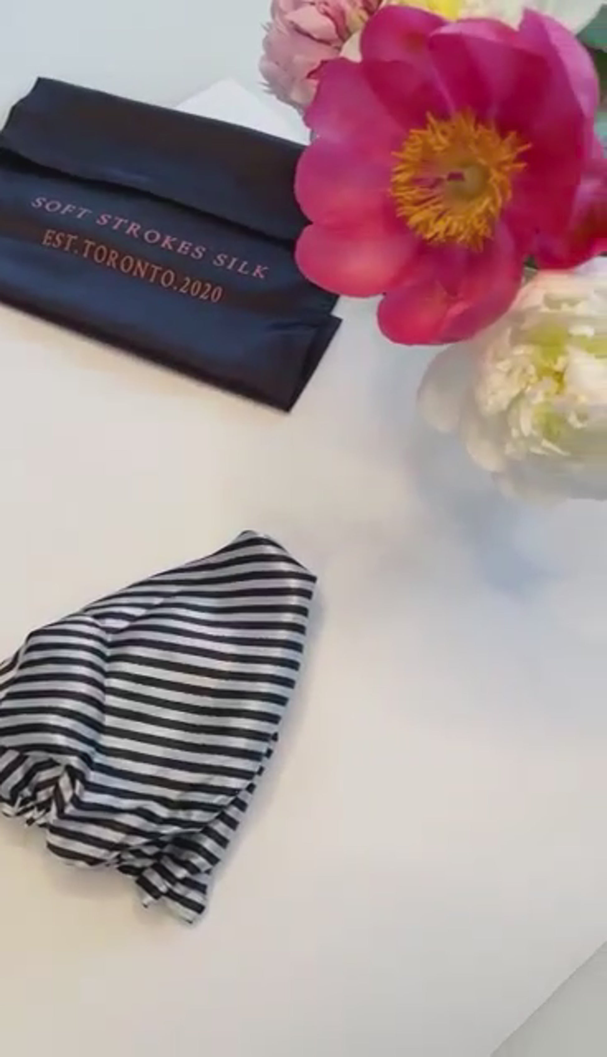 This bonnet is lined with silk to ensure the smooth side of silk charmeuse is touching your hair. We selected contrasting colours so it's fun to wear!